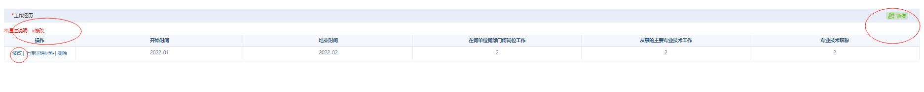 2.了解审核状态:在此页面查看申报材料的审核状态及审核意见。如审核不通过,可点击进入,按审核意见进行修改完善。注意仅能修改被退回条目,即右上角有‘新增’或有‘修改’操作信息。