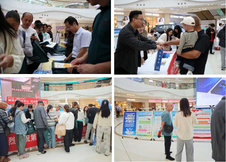 活动现场通过悬挂横幅、LED大屏滚动播放“诚信诚实守初心 依法统计担使命”“热烈庆祝第十六届‘中国统计开放日’”等宣传标语,营造了“走近统计、了解统计”的浓厚氛围。工作人员通过发放“您身边的统计指标”“致全国1%人口抽样调查户的一封信”“统计法宣传手册”“住户调查宣传手册”“佟记客栈的统计故事”等宣传资料、设置咨询台和宣传展板等方式,向市民生动讲解了统计相关知识及在日常应用和服务社会发展的具体案例。现场特别设置了统计知识有奖竞答环节,市民踊跃参加,在轻松愉快的氛围中既学习了统计知识,又收获了精美的小礼品。