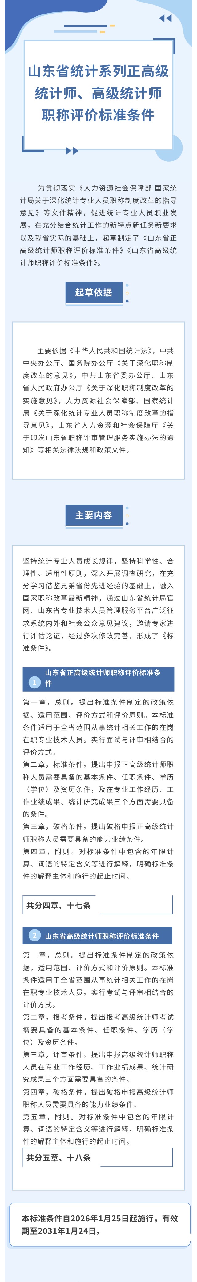 一图解读--山东省统计系列正高级统计师、高级统计师职称评价标准条件